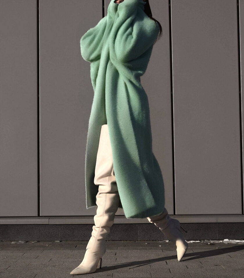 To restore the cardigan’s soft texture and natural volume, we recommend gently steaming it after unpacking.