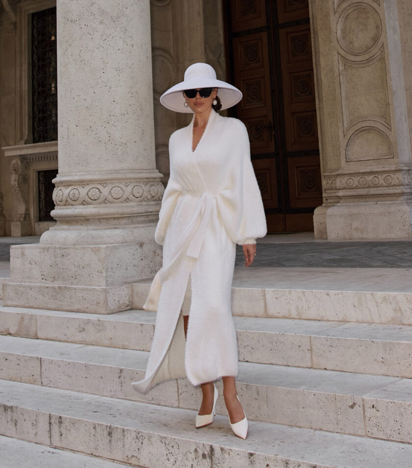 Discover our iconic Milano cardigan in its timeless oversized silhouette with a matching belt. Presented in three lengths for your comfort and styling preference – 110 cm, 120 cm, 130 cm.