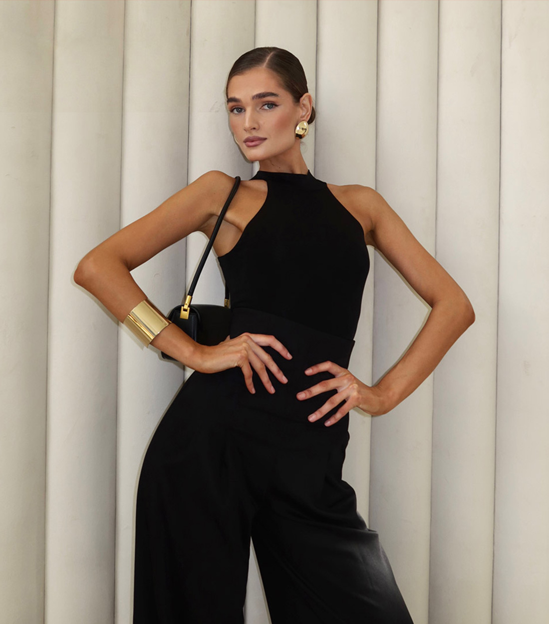 A cropped viscose top with a clean halter neckline, designed for a smooth fit and refined silhouette. Lightweight, soft on the skin, and perfect for effortless day-to-evening styling. Length 36 cm.