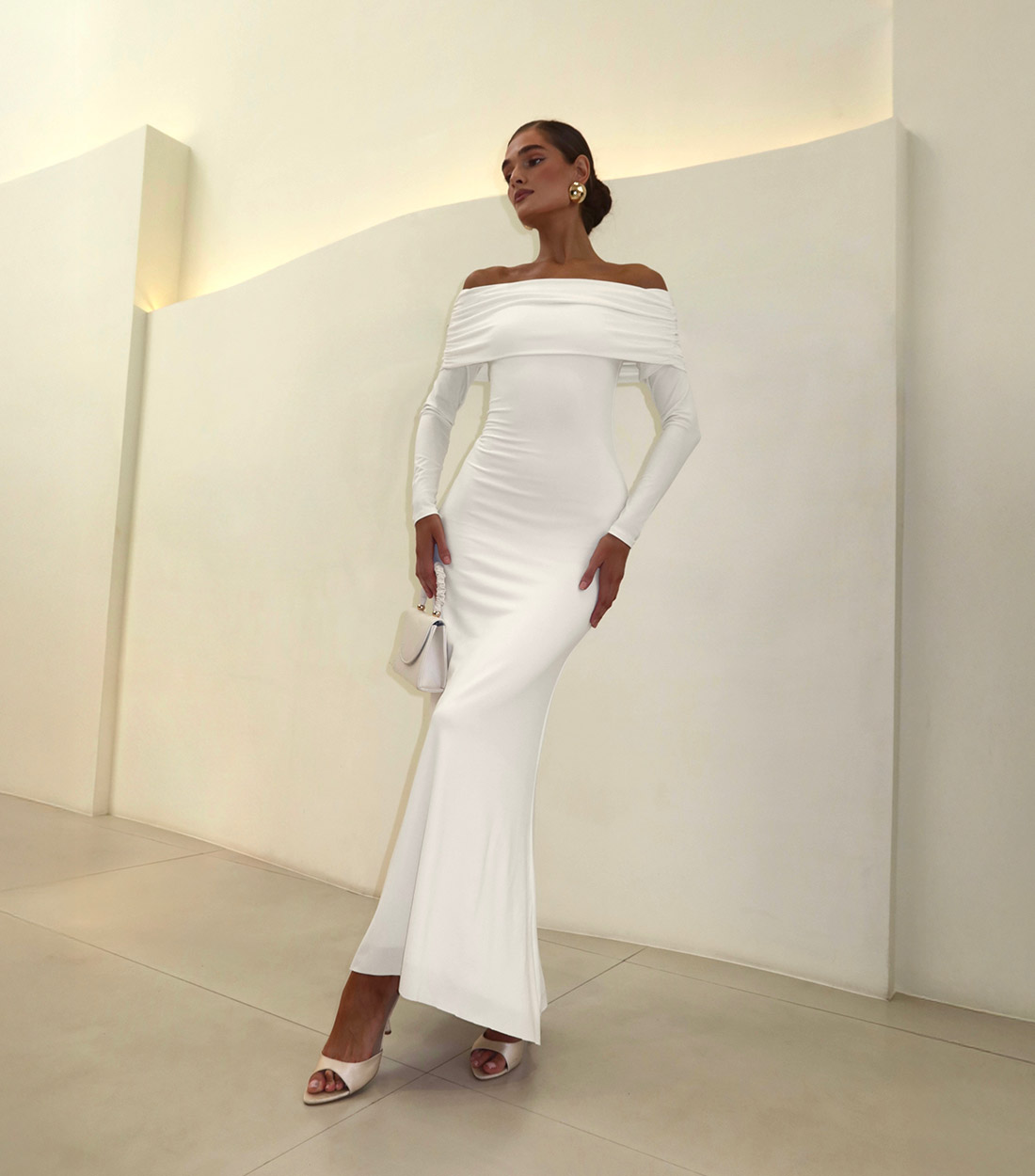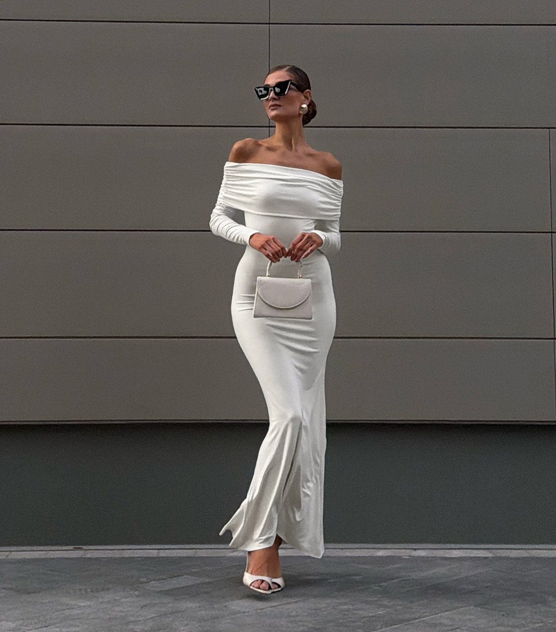 Off shoulder midi dress made from premium double layer Turkish viscose.