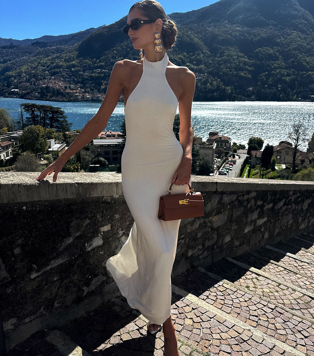 Crafted from premium Turkish viscose, this double-layered dress offers a beautifully sculpted fit while ensuring full coverage and a smooth, non-transparent finish. Its minimalist silhouette with a high neckline and fluid drape embodies understated elegance and timeless femininity.