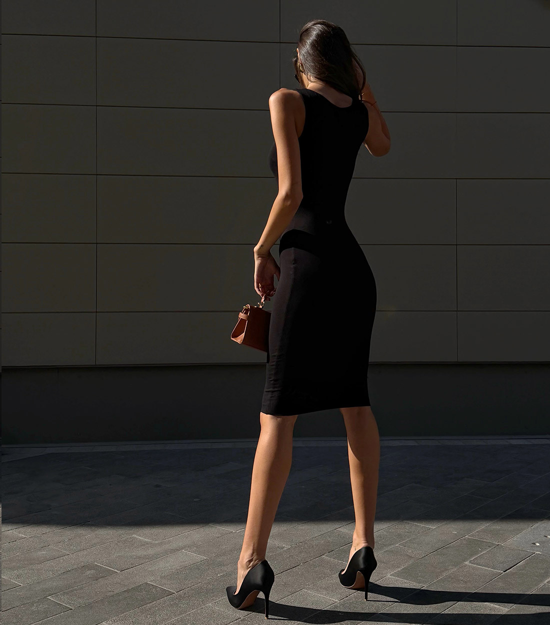 From our Basic Collection, a sleek fitted mini dress that perfectly balances simplicity and elegance. Crafted from soft stretch fabric for a flattering silhouette. Available in mini and midi lengths, and in sky blue, black, and white.