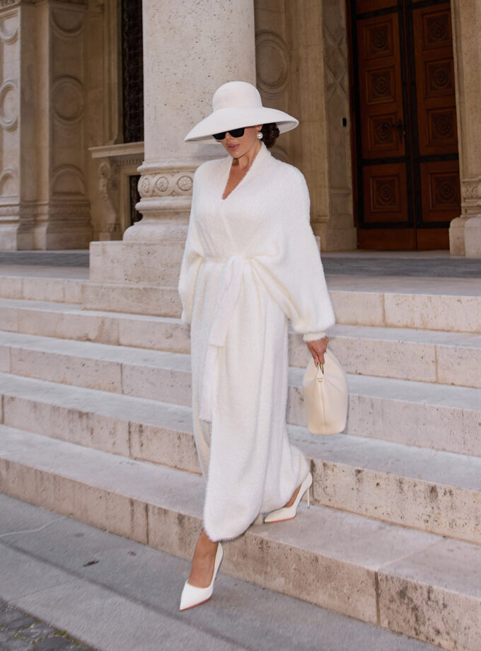 To restore the cardigan’s soft texture and natural volume, we recommend gently steaming it after unpacking.