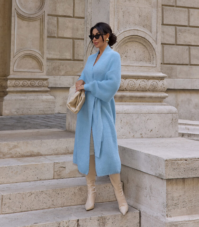 To restore the cardigan’s soft texture and natural volume, we recommend gently steaming it after unpacking.