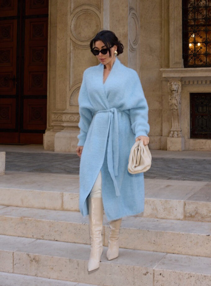 To restore the cardigan’s soft texture and natural volume, we recommend gently steaming it after unpacking.