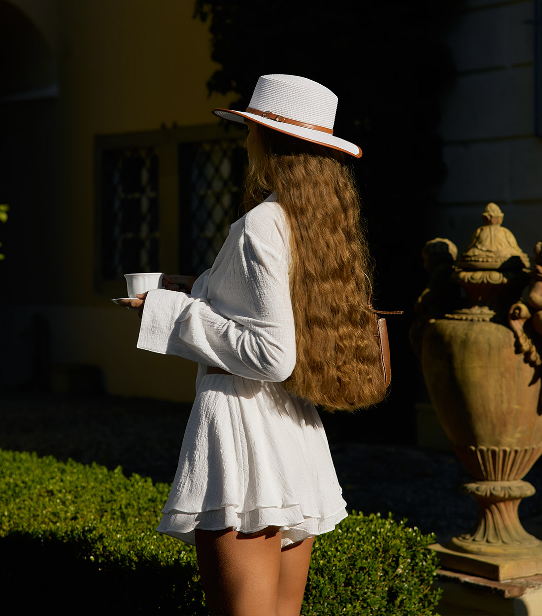 Elegant summer set crafted from 100% natural fabric — lightweight, breathable, and effortlessly soft against the skin. The relaxed silhouette exudes understated sophistication, while the tied shirt accentuates the waist, adding a touch of feminine ease.